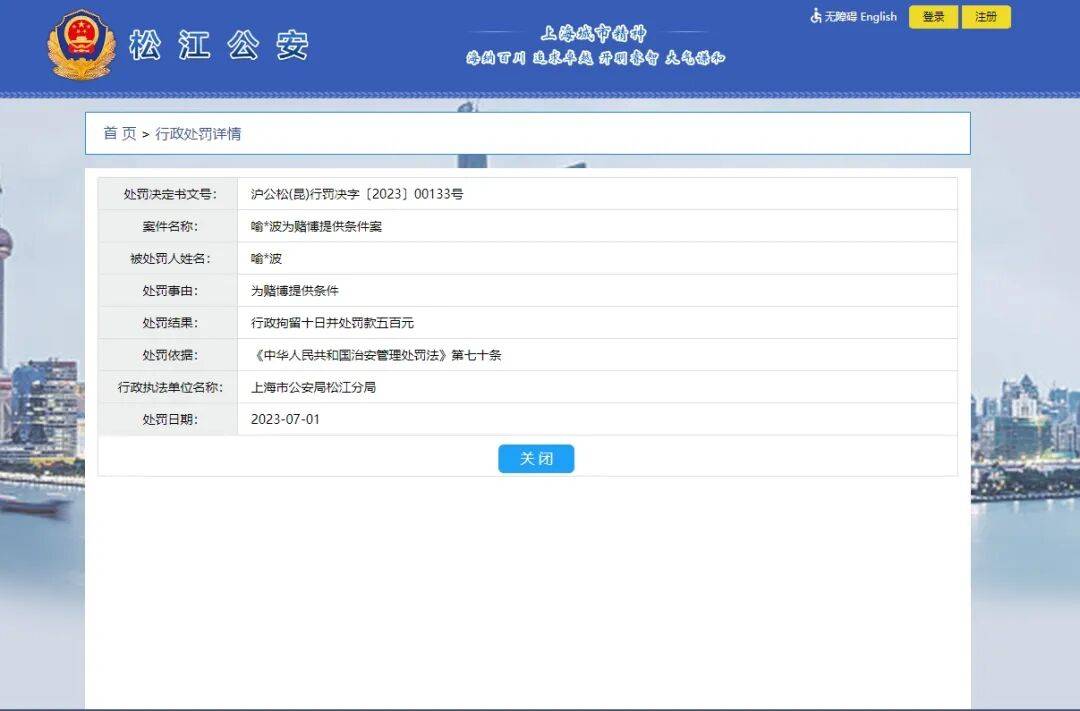 *波(不排除是重名)为赌博提供条件案进行处罚公告,处于行政拘留十日并处罚款五百元!