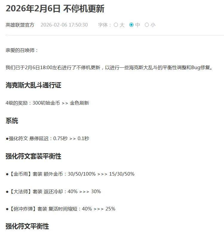 去年10月更新的海克斯大乱斗,可以说是当前《英雄联盟》里最热门的玩法。想必很多老玩家都和我一样,很难想象会在工作日晚上看到英雄联盟客户端需要排队的盛况,甚至排队人数多达10万,排队时长十几分钟。官方不仅为排队情况严重的区服进行扩容,更在2026年春节期间,对这一玩法进行了大型更新。在版本更新后由于经济失衡、系统相对复杂导致游戏体验两极化严重,引发了玩家大量差评,官方紧急通过热补丁修正了多处问题。