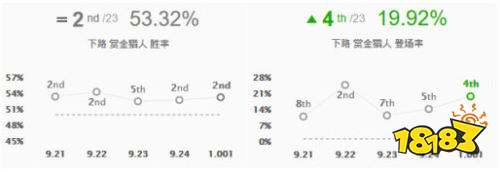 女枪在新版本胜率相对稳定达到了53.22%位列第二名,登场率提升1位达到了19.92%位列第四名。值得一提的是女枪近几个版本表现都很强势,尤其是胜率数据,一直稳居前五名。绝对是大家长期上分的必备射手。